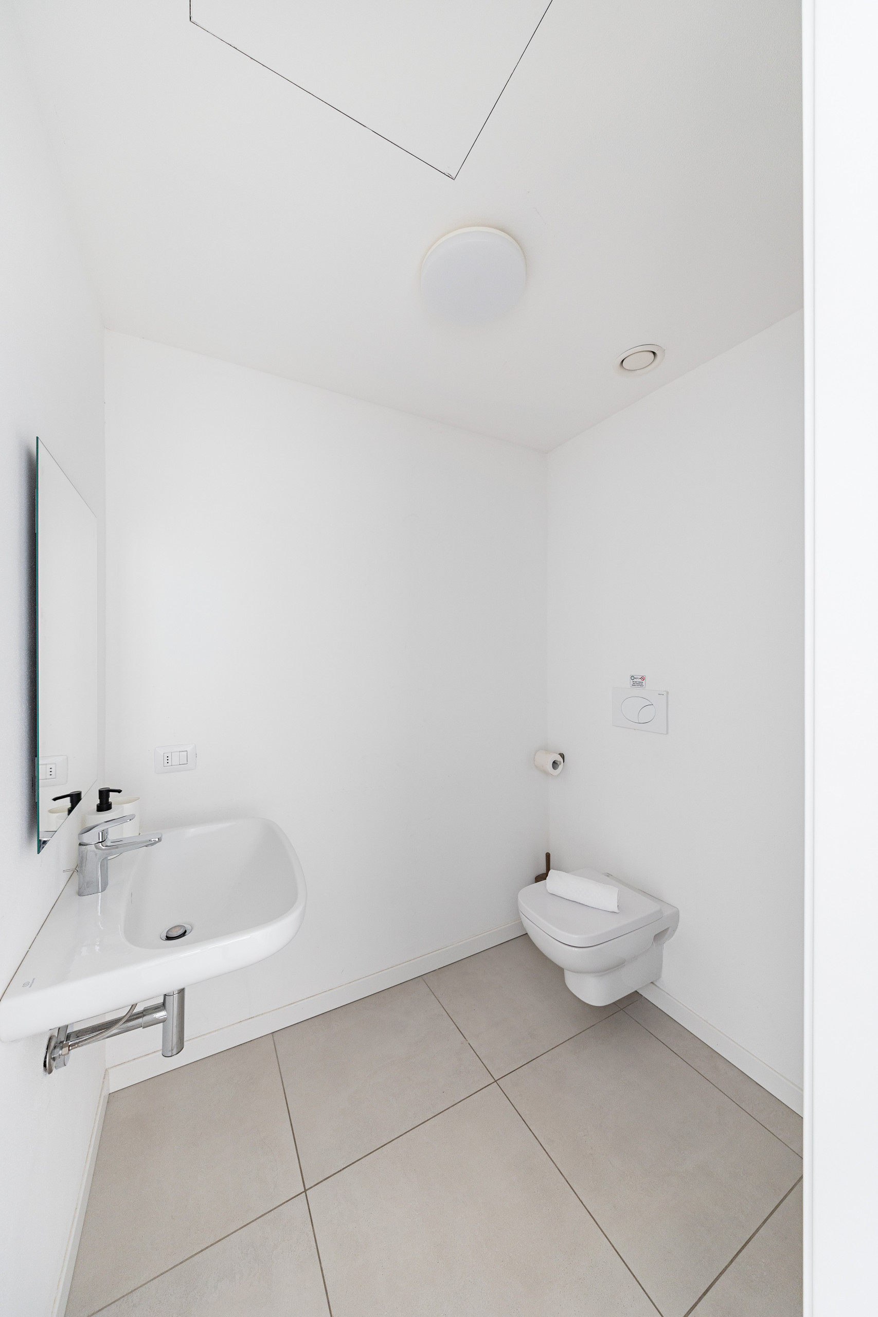 Il secondo bagno dotato di doccia, lavabo, bidet e WC completa il layout di questo splendido appartamento.