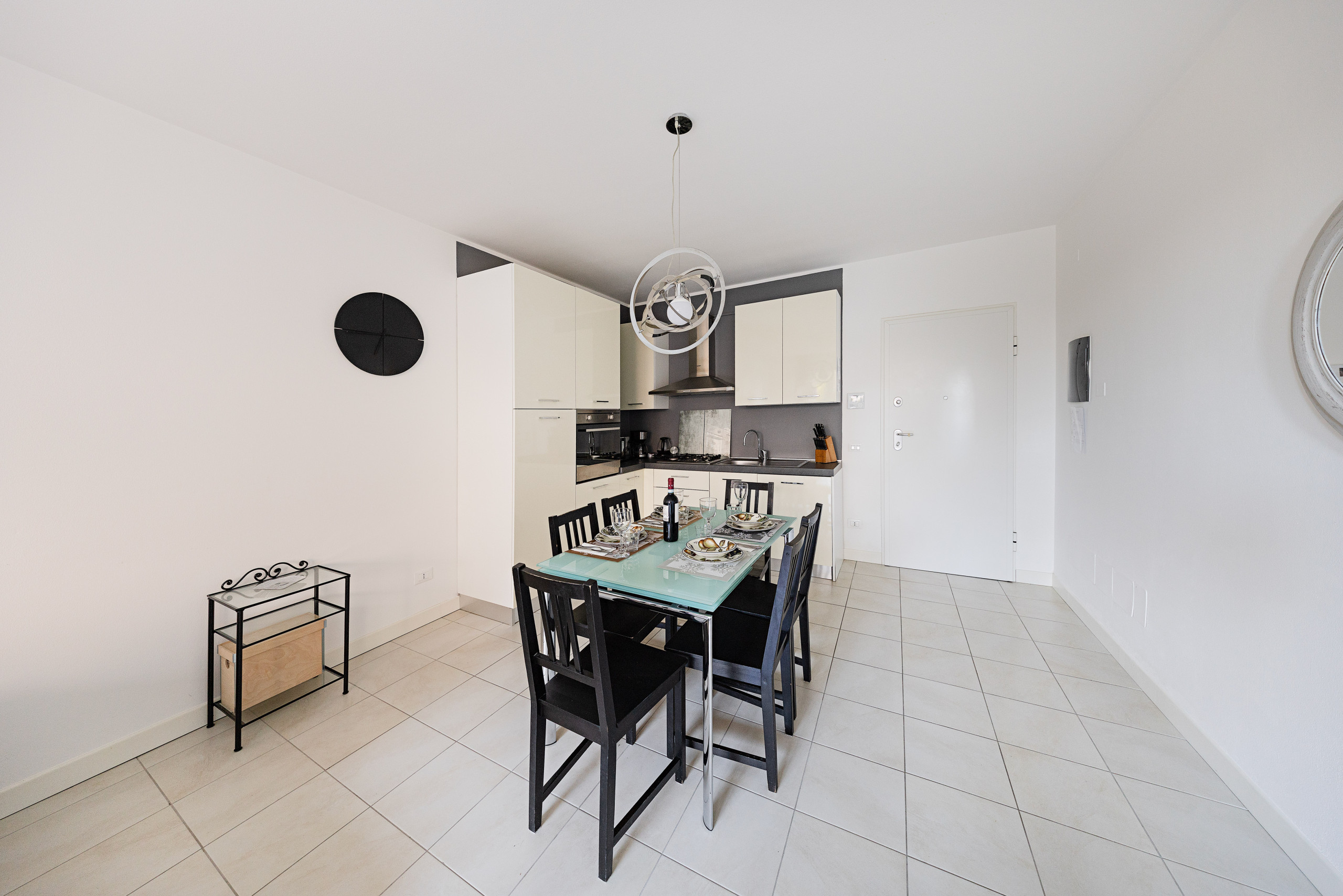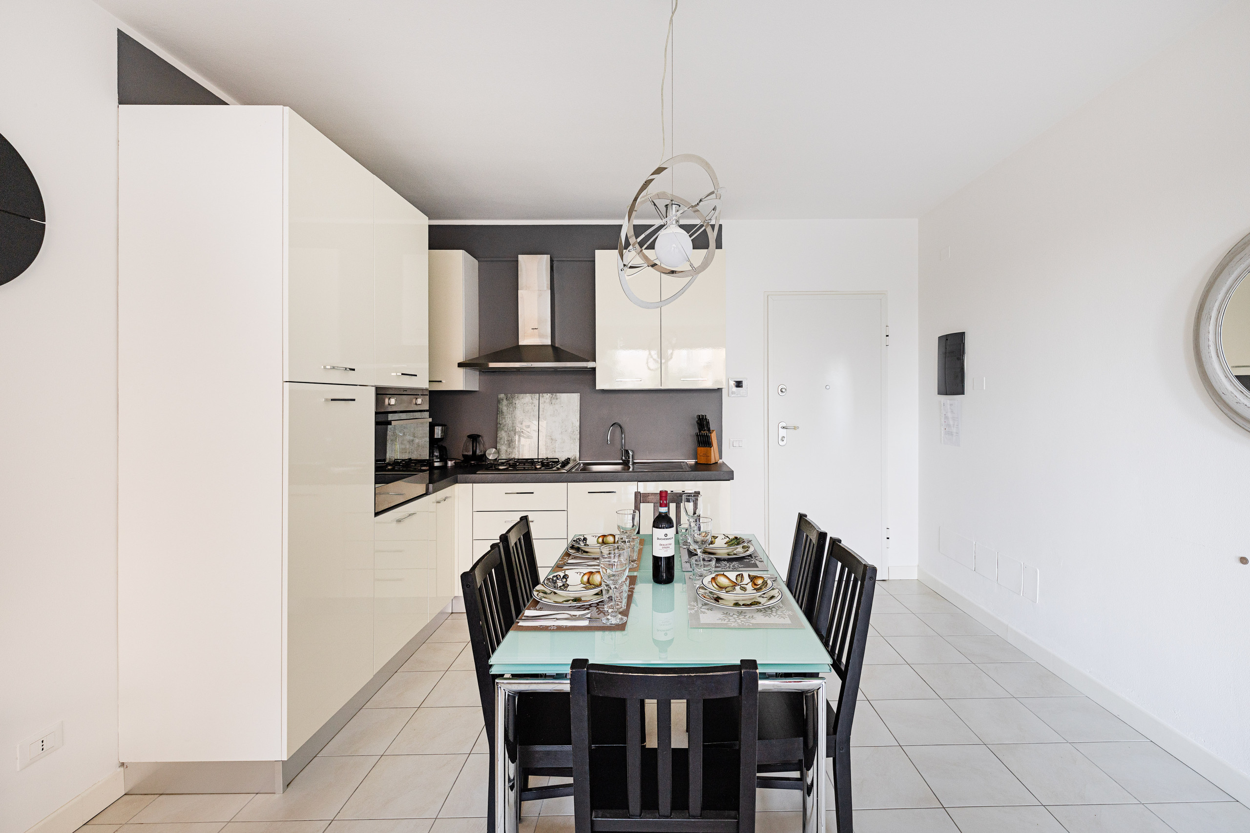 L’appartamento, dotato di connessione ad internet Wi-Fi gratuita, da il benvenuto agli ospiti con il luminoso soggiorno dotato di divano, Smart TV, tavolo da pranzo con sedie, cucina completamente attrezzata di frigorifero, congelatore, piano cottura a gas, lavastoviglie, forno, microonde, bollitore elettrico, spremi agrumi, macchina del caffè e tostapane.
