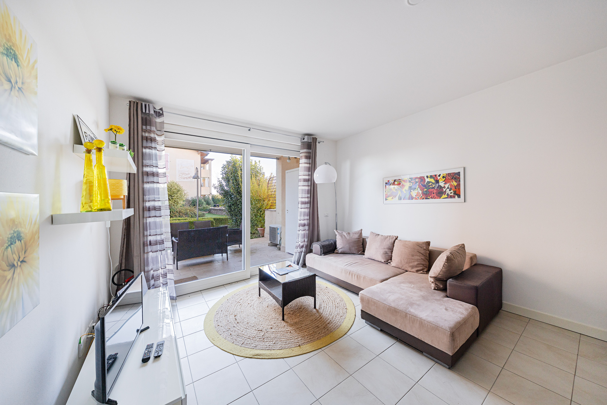 All'interno del signorile e recente residence "Le Corti Caterina", a poca distanza dal centro di Desenzano del Garda e dal Lago, appartamento al piano terra con due camere da letto per una vacanza fino a 6 persone.