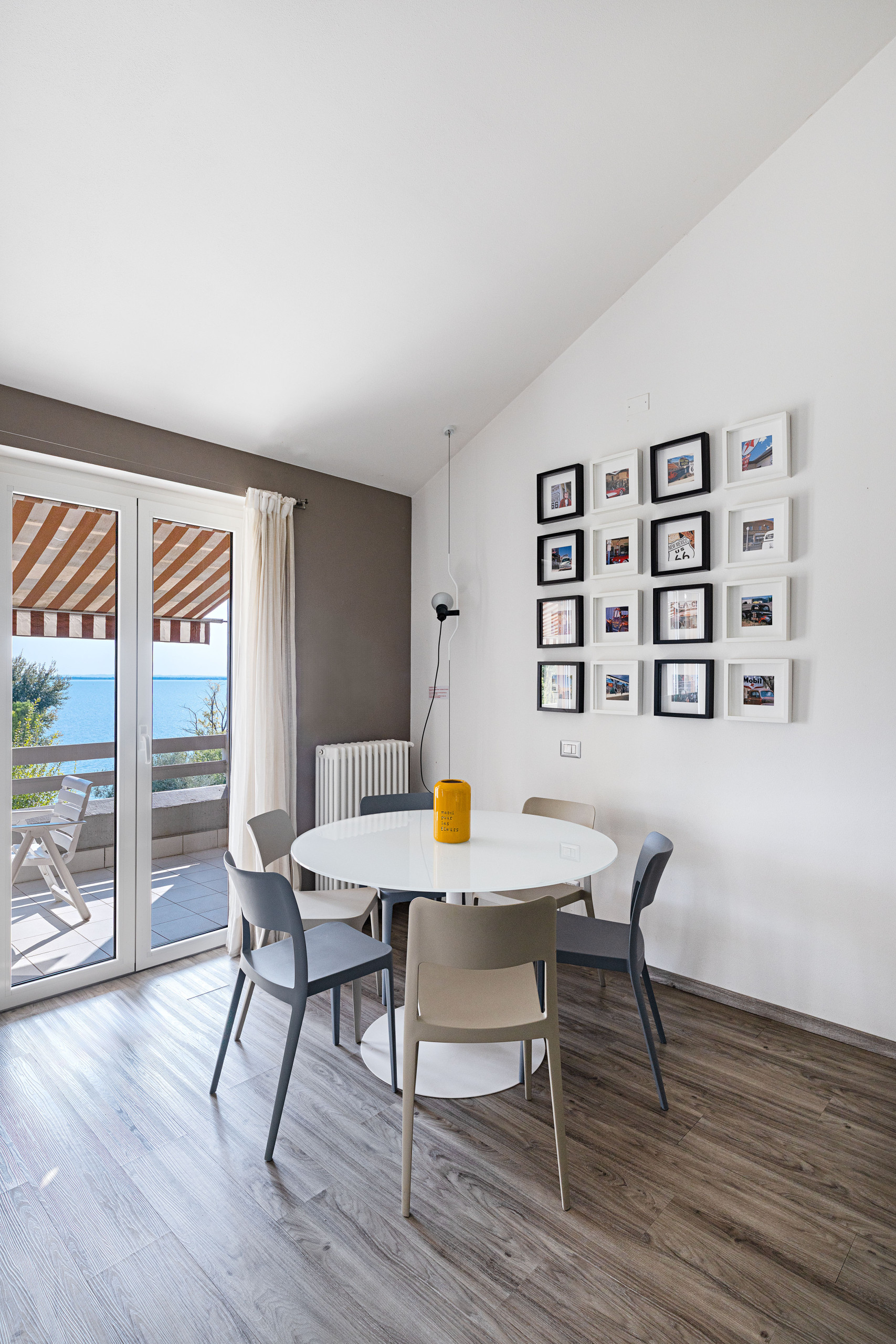 L'appartamento, dotato di connessione ad internet Wi-Fi gratuita, da il benvenuto agli ospiti con un ampio e luminoso soggiorno dotato di comodo e spazioso divano, tavolo da pranzo con sedie, Smart TV e cucina a vista completa di frigorifero, congelatore, forno, microonde, lavastoviglie, bollitore elettrico, spremiagrumi, macchina del caffè americano e tostapane. Dal soggiorno si accede al terrazzo privato arredato con tavolo da pranzo per godere di pasti all'aria aperta con vista lago.