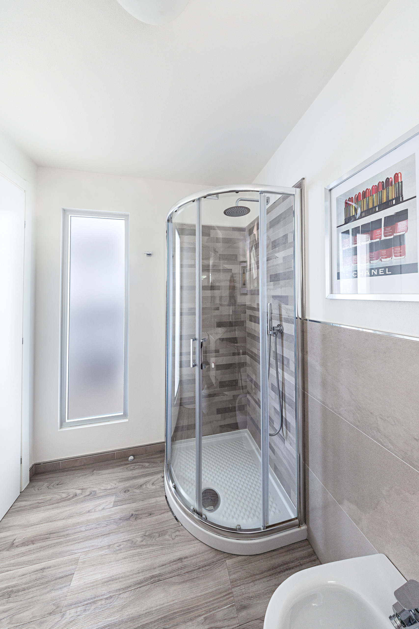 Il piano terra viene completato da un bagno con doccia e da una camera da letto con letto singolo, armadio e ventilatore. Inoltre è presente un ripostiglio con lavatrice e ferro da stiro.