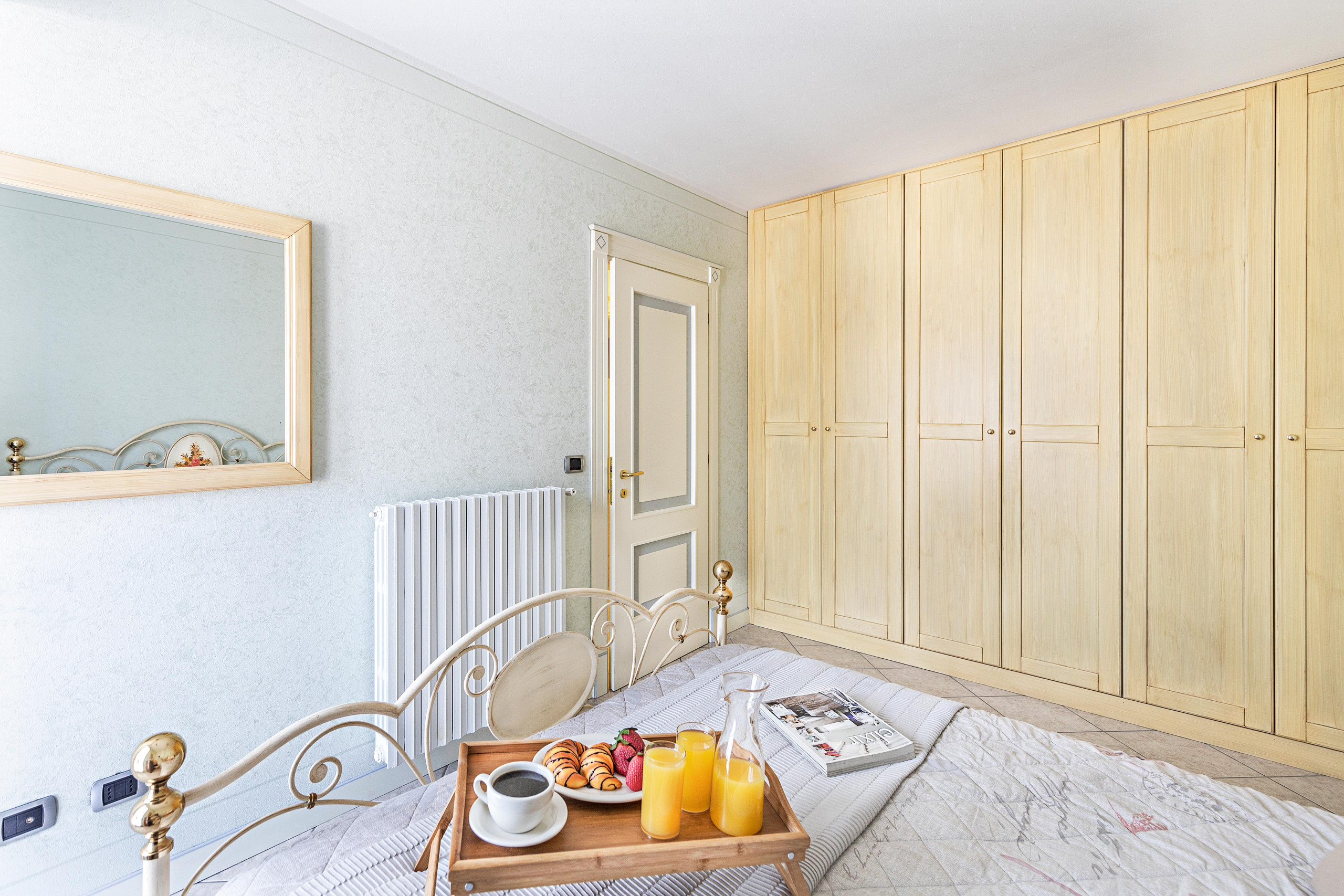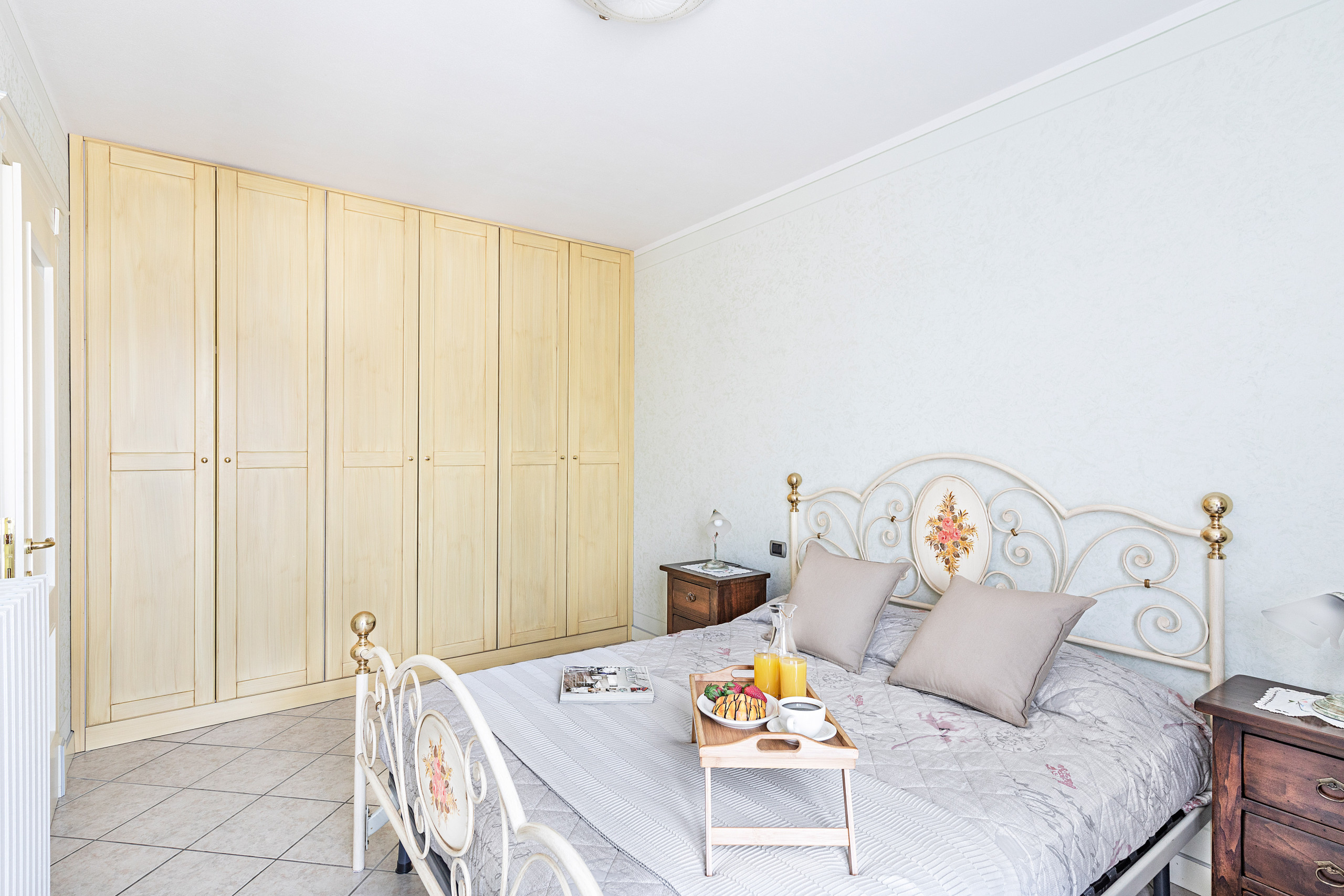 La camera da letto, molto ampia e arricchita da un pavimento in parquet, è dotata di letto matrimoniale e di un letto singolo, e gode di affaccio su balcone privato sul retro. Inoltre, nel corridoio si trova un ampio armadio.