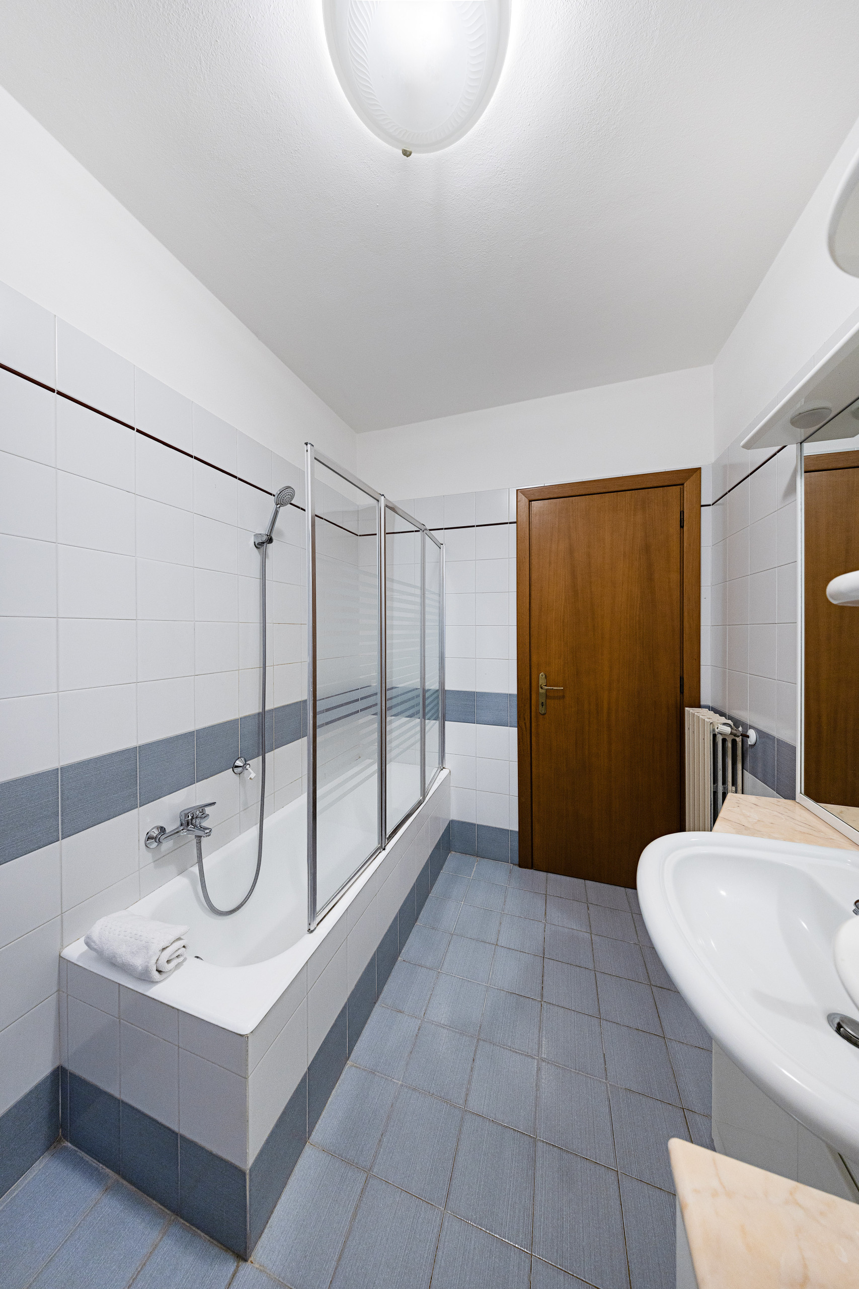 Il luminoso e tranquillo appartamento viene completato dall’ampio giardino privato e dal garage privato (misure: larghezza 2,40m lunghezza 5,40m altezza 2,35m) che può ospitare un'auto.