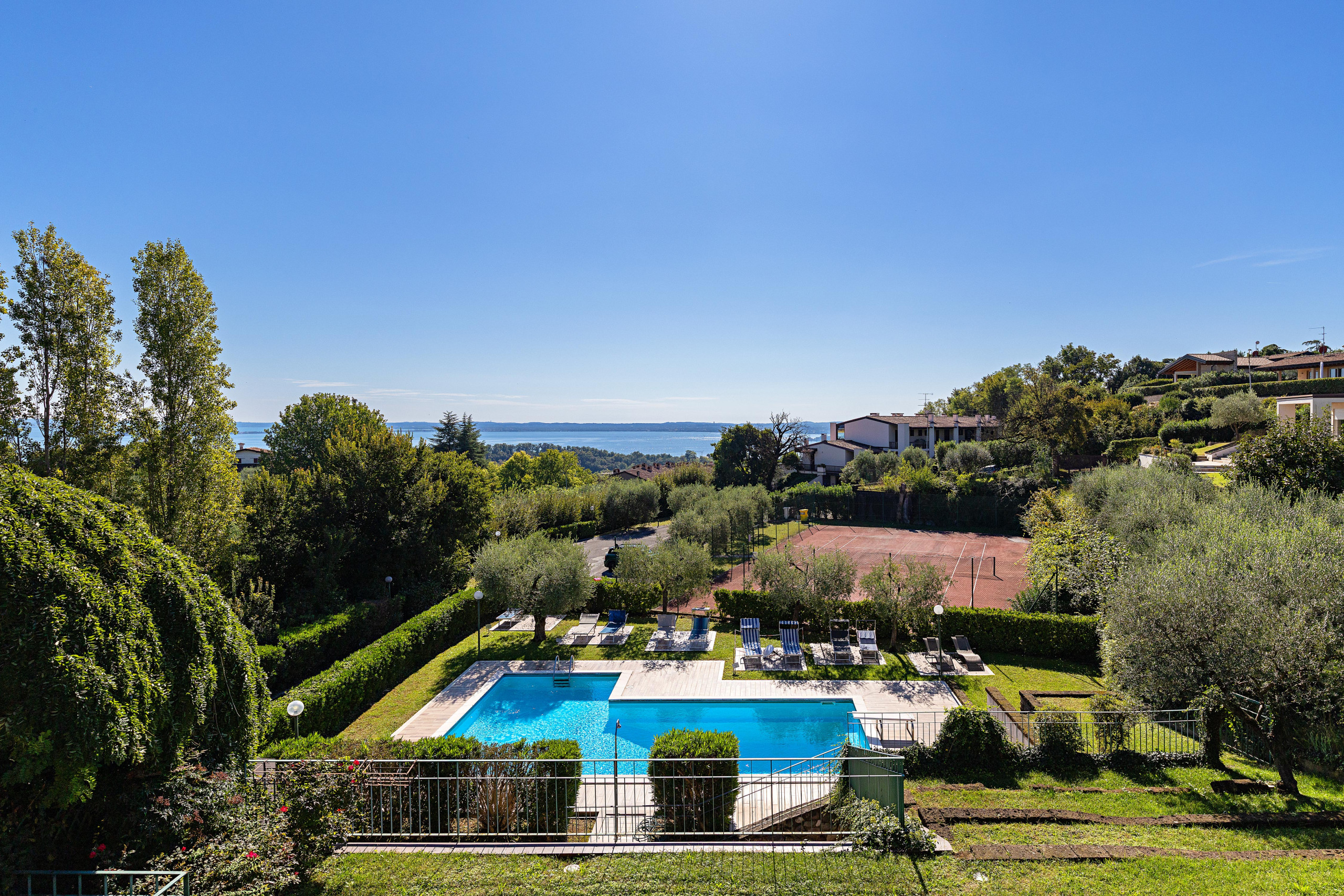 Moderno appartamento con due camere da letto, al piano primo con piccolo balcone, situato all’interno di un piccolo condominio di tre unità dotato di piscina privata a Soiano del Lago.