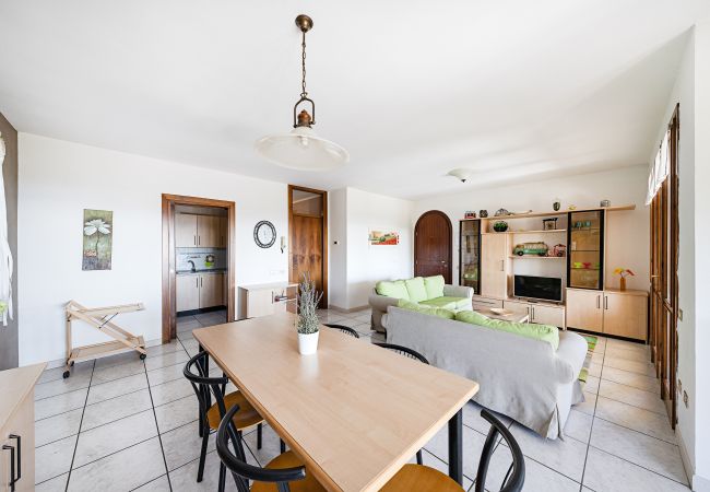 Dal soggiorno si accede al piccolo patio coperto, dotato di tavolo da pranzo, ideale per pranzi e cene all’aperto con una piacevole vista sulla piscina del condominio.