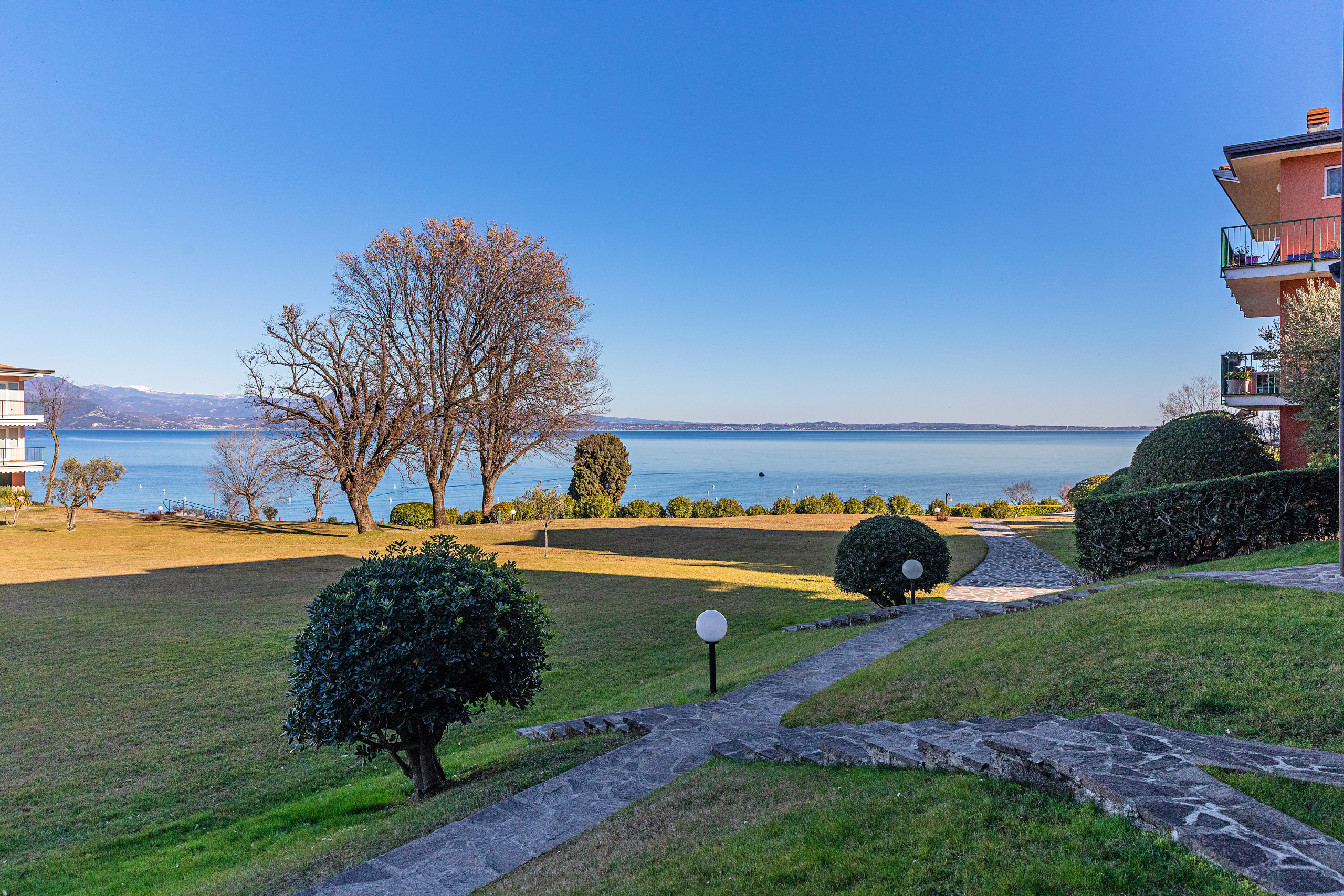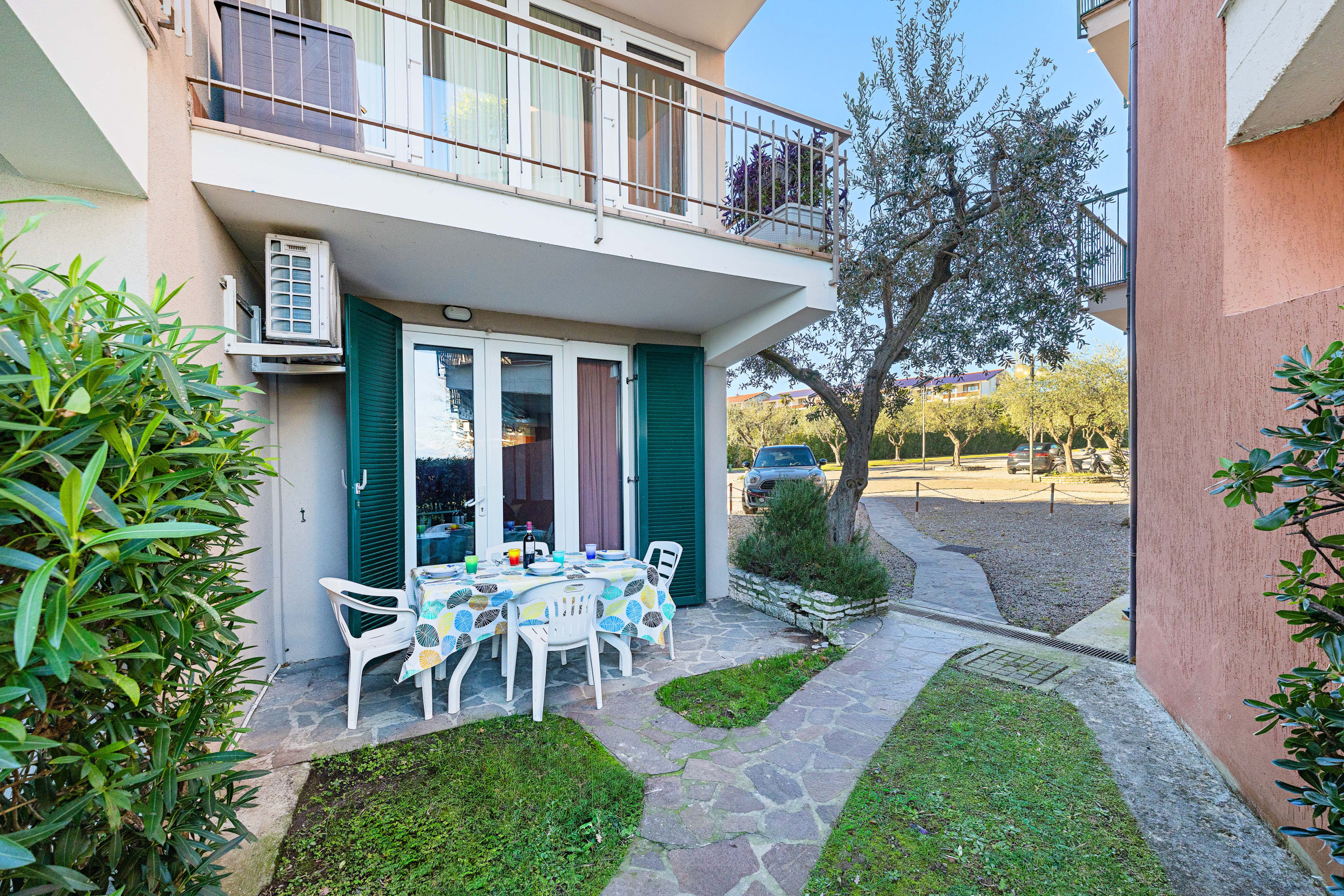 Modernes Apartment im Erdgeschoss in Manerba del Garda, gelegen in der Residence „San Sivino“, ausgestattet mit Swimmingpool, Spielplatz, großen gemeinschaftlichen Grünflächen sowie direktem Zugang zum Strand und zum See.