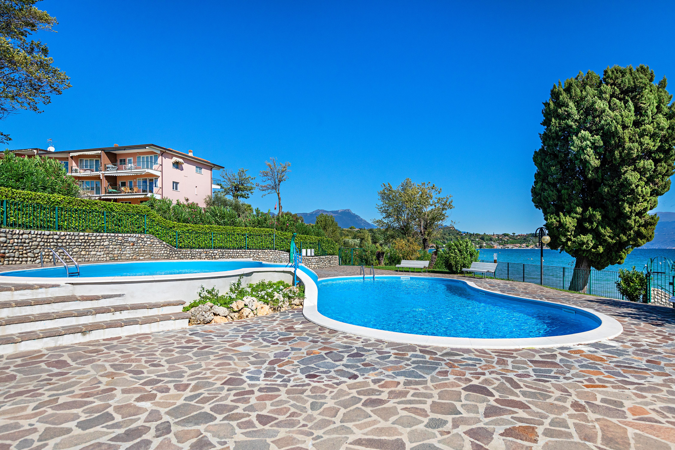 Modernes Apartment in Manerba del Garda, innerhalb der Residenz „San Sivino“ mit Swimmingpool, Spielplatz und direktem Zugang zum Strand und zum See.