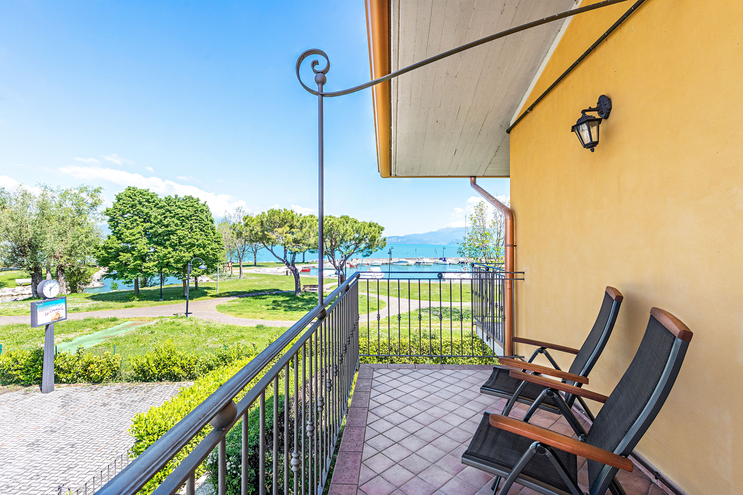 Helle Wohnung im ersten Stock der Wohnanlage Baglio degli Ulivi mit Swimmingpool, Volleyballfeld und großen gemeinschaftlichen Grünflächen, in Lugana di Sirmione.