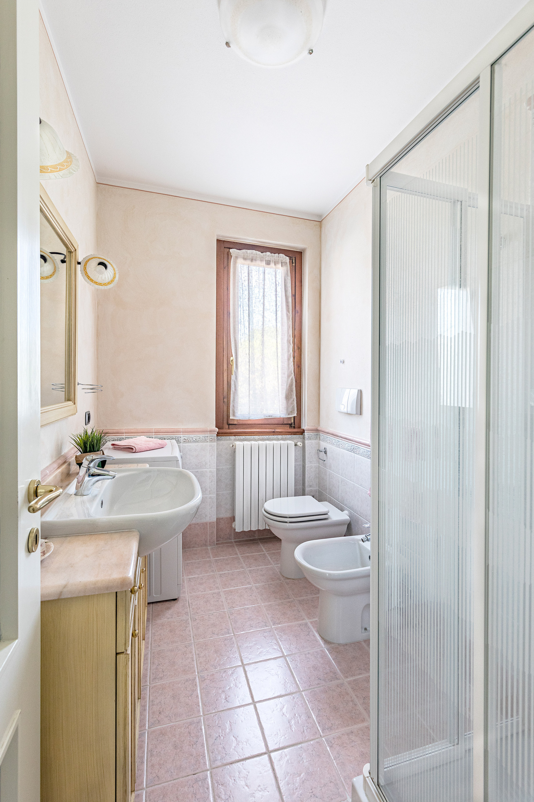Das Badezimmer mit großer Dusche, Waschbecken, Bidet und WC vervollständigt die Wohnung.