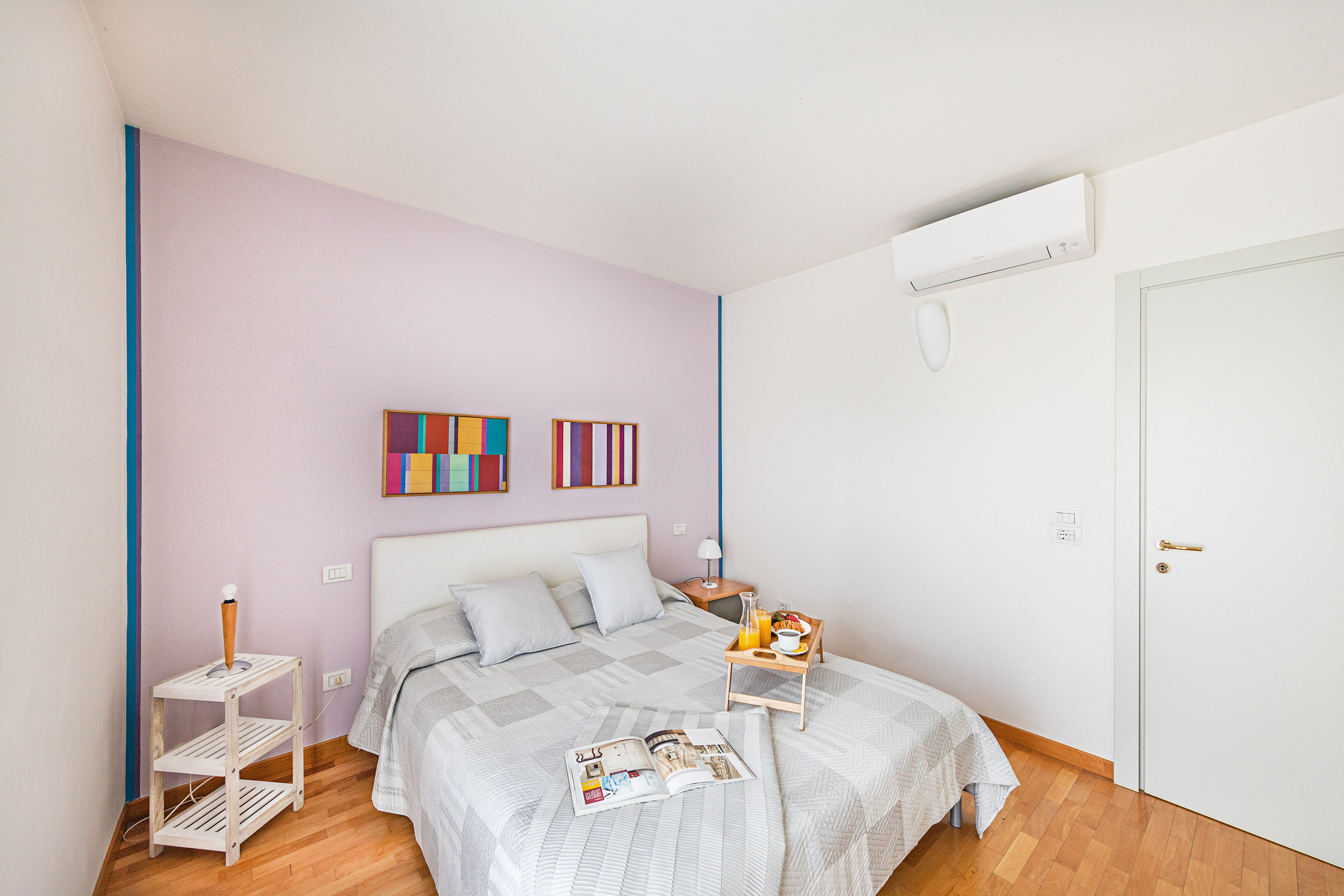 Ein weiteres Schlafzimmer befindet sich neben dem Garagenbereich und ist ebenfalls mit einem Doppelbett und Kleiderschränken ausgestattet. Den Gästen steht außerdem ein weiteres Badezimmer mit Dusche, Waschbecken, Bidet und WC zur Verfügung.