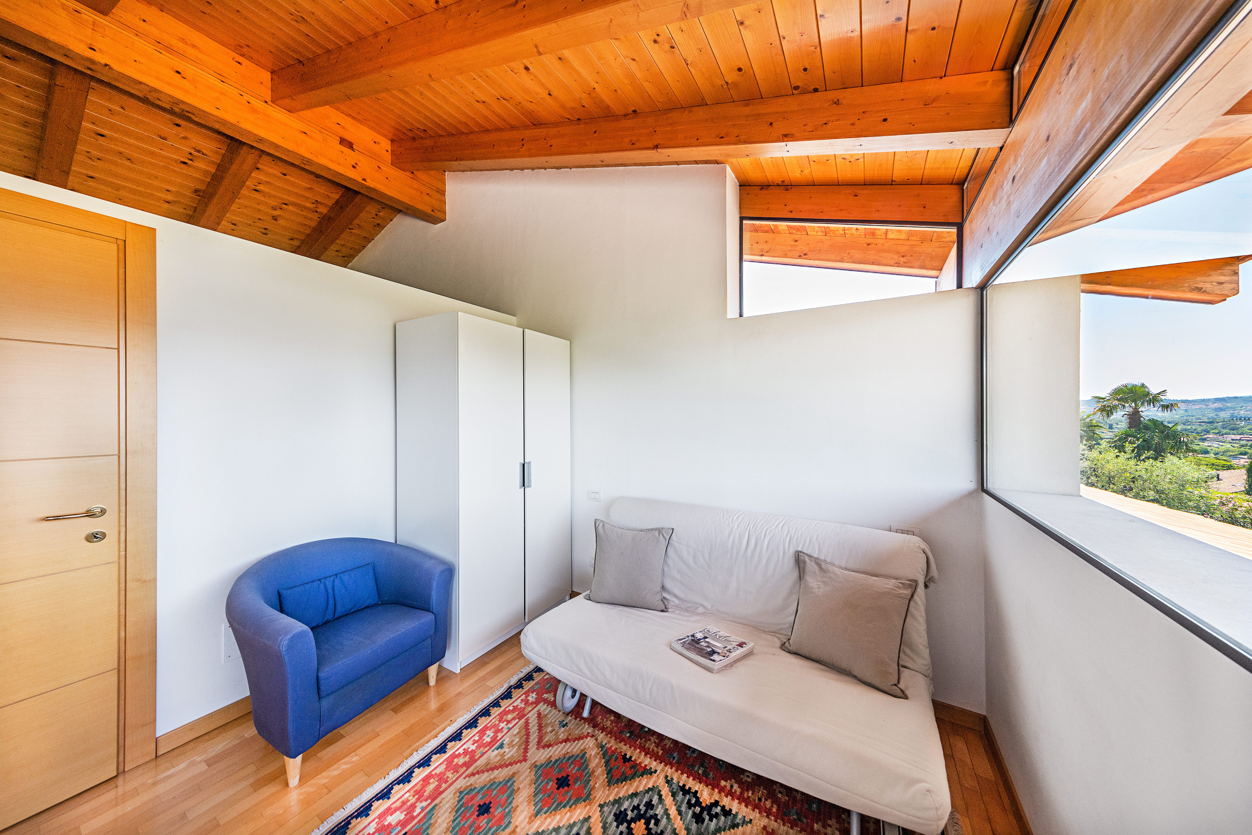 Im Erdgeschoss der Villa befinden sich weitere Bereiche, die Villa Vittoria Größe und Komfort verleihen. Hier gibt es zwei geräumige Suiten mit Doppelbett, Sofa, Sessel und Kleiderschränken; jede Suite verfügt über ein eigenes Bad en suite mit Dusche, Waschbecken, Bidet und WC. Die Zimmer im Erdgeschoss haben eine Terrassentür mit Blick nach innen.