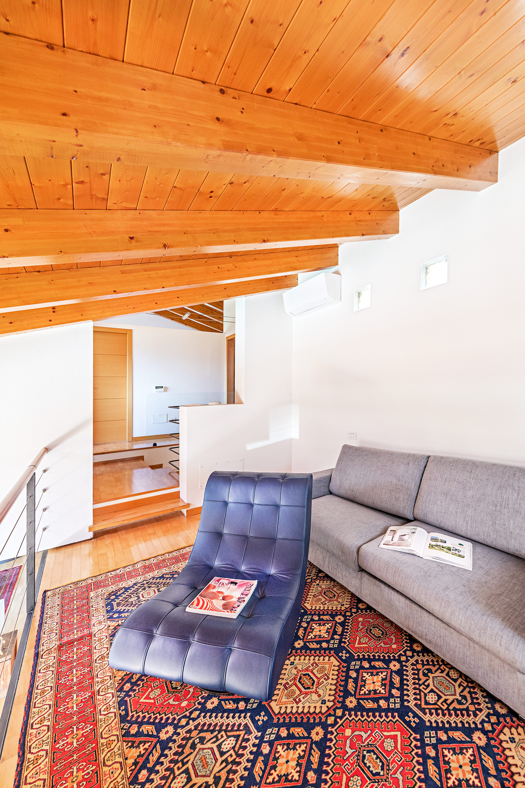 Der private Außenbereich der Villa ist reich an Details und Annehmlichkeiten und garantiert im Sommer entspannte Momente: privater Infinity-Pool, großer Privatgarten mit Blumen und Pflanzen verschiedener Arten, Grill sowie eine Relaxzone mit Sofas und Sonnenschirm.