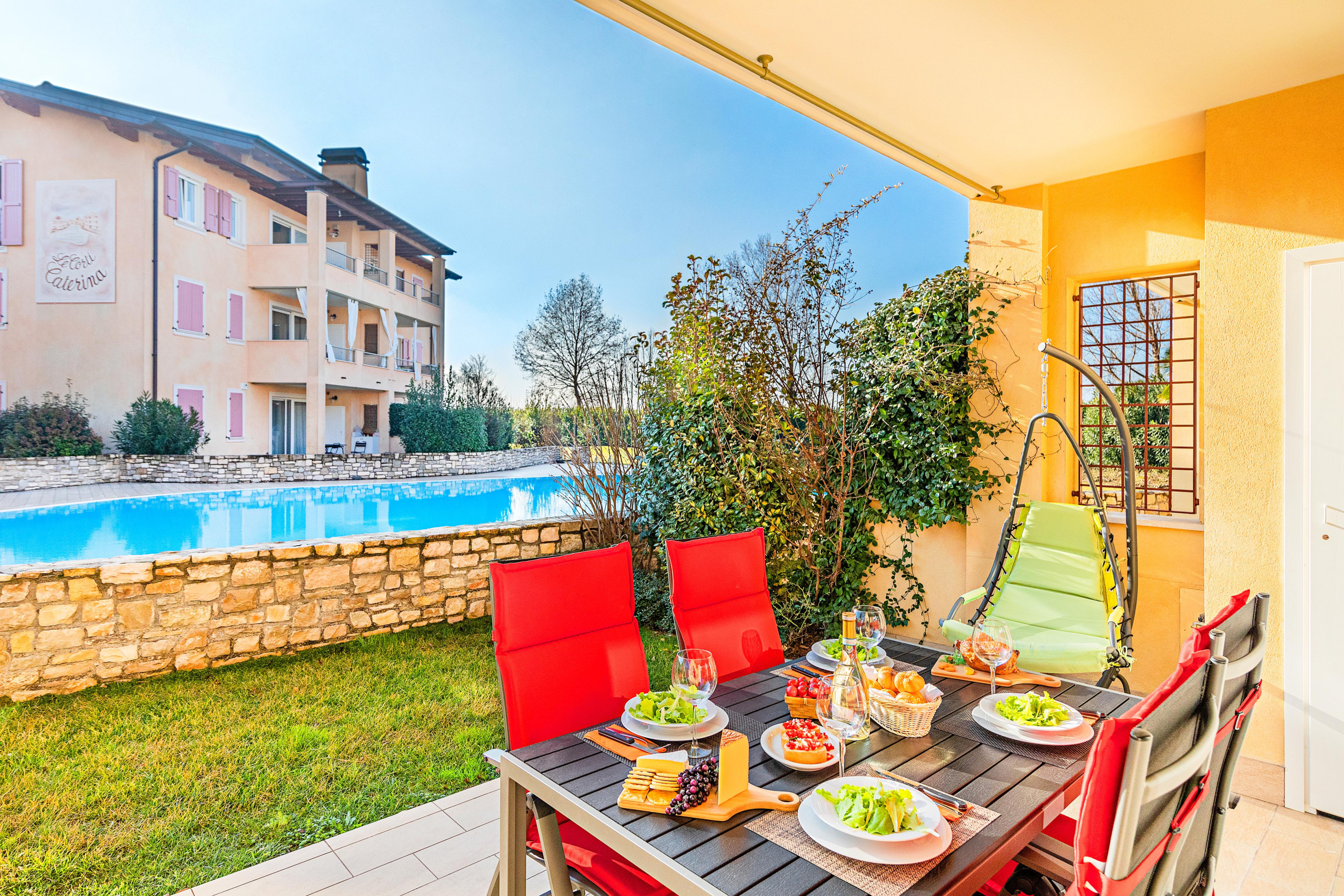 Lonato del Garda is located in the southwestern area of Lake Garda, surrounded by gentle morainic hills and vineyards producing renowned local wines. The area offers many leisure activities: wine and food tours, hiking and cycling routes, markets, and traditional fairs. The Desenzano train station is about 10 minutes by car, and the nearest airport is 30 minutes away.