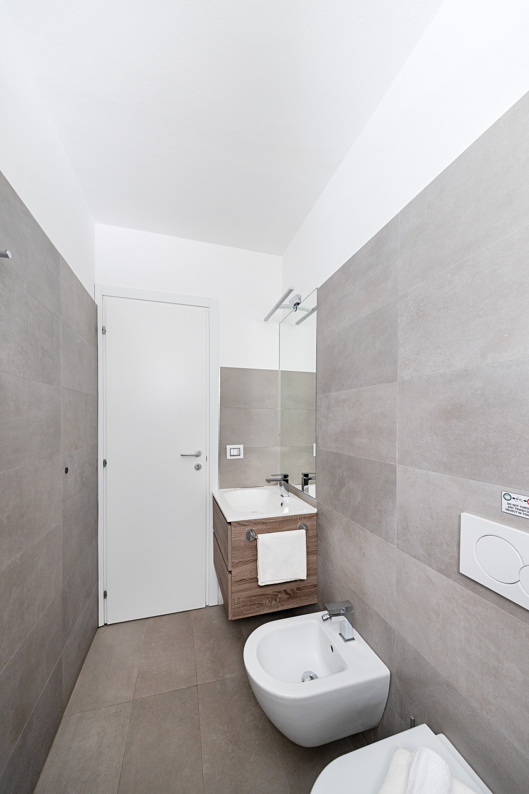 The apartment continues with a double bedroom and a bathroom with shower, sink, bidet, and WC.