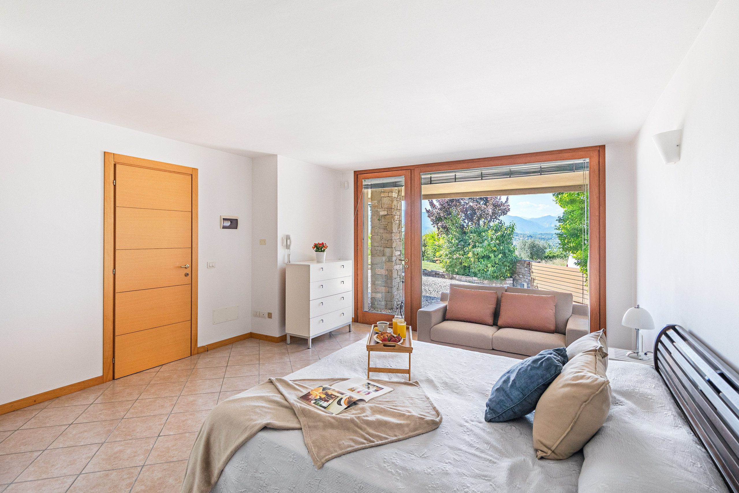 The villa also offers free Wi-Fi and continues to impress with the second floor entirely dedicated to the sleeping area. The master bedroom, furnished with a double bed, large wardrobes, and a fireplace, benefits from a stunning lake view. On the same floor, there is also a double sofa bed for 2 additional guests, and a bathroom with shower, sink, bidet, and toilet.
