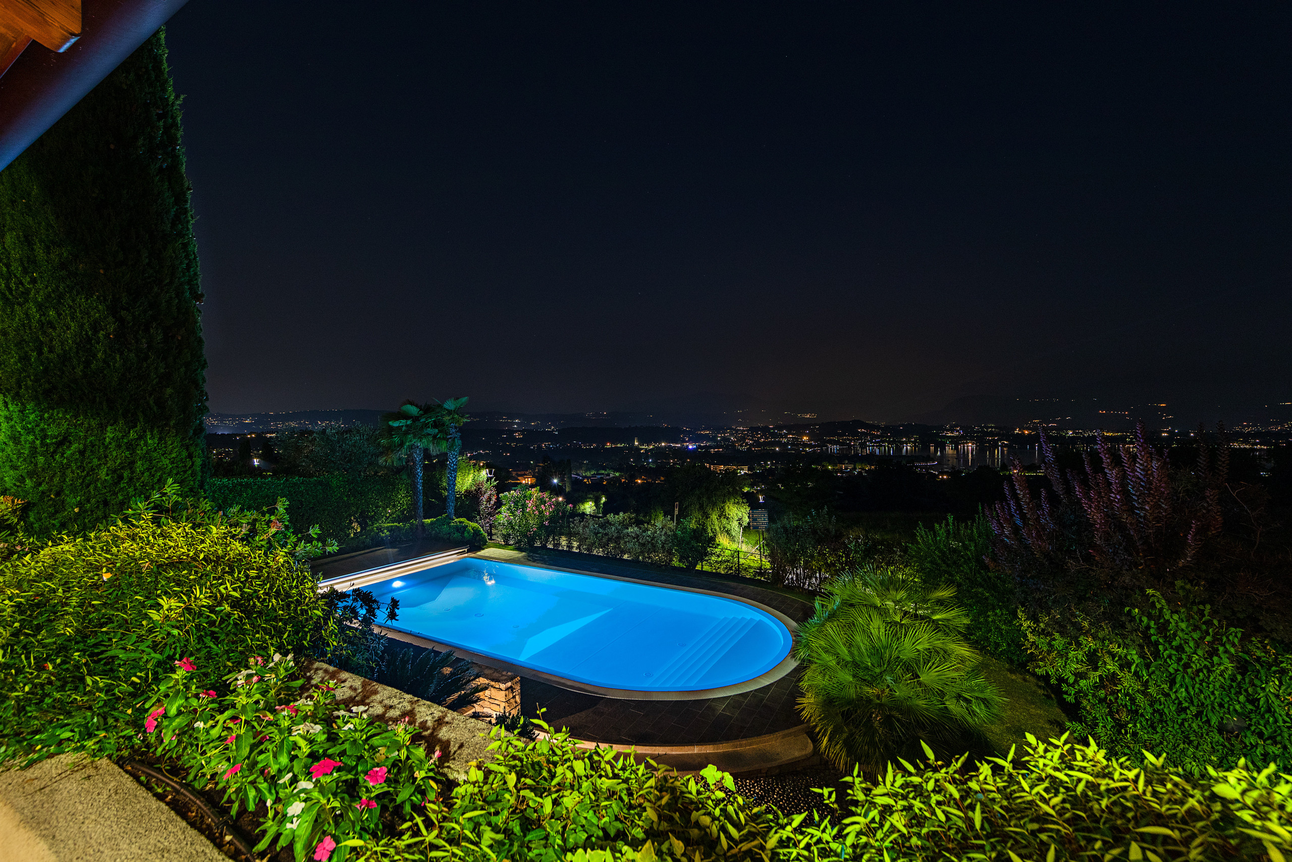 The villa’s private outdoor area is rich in details and amenities that guarantee relaxing moments during the summer: private infinity-edge pool, large private garden with flowers and plants of various species, barbecue, and a relaxation area with sofas and a sun umbrella.