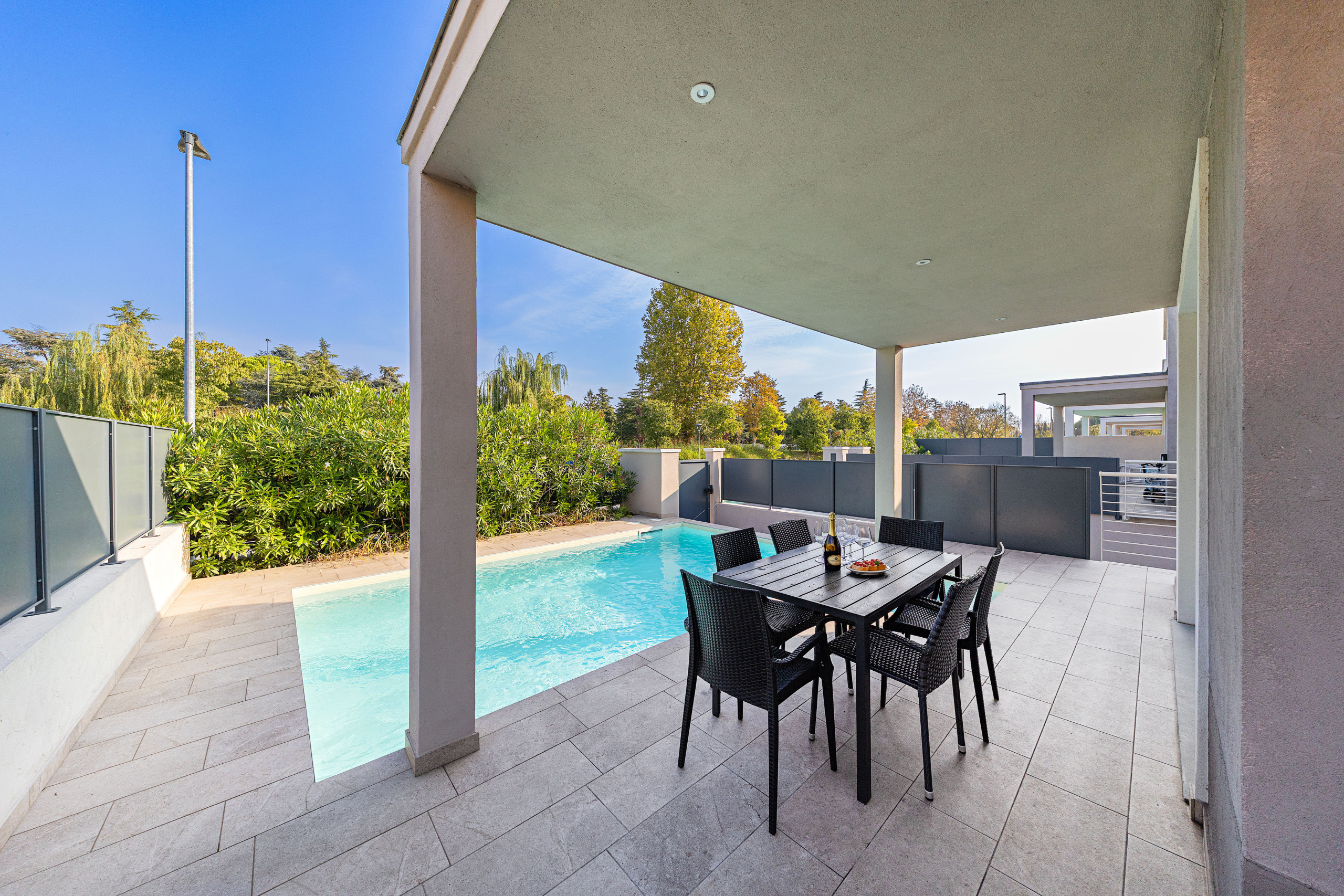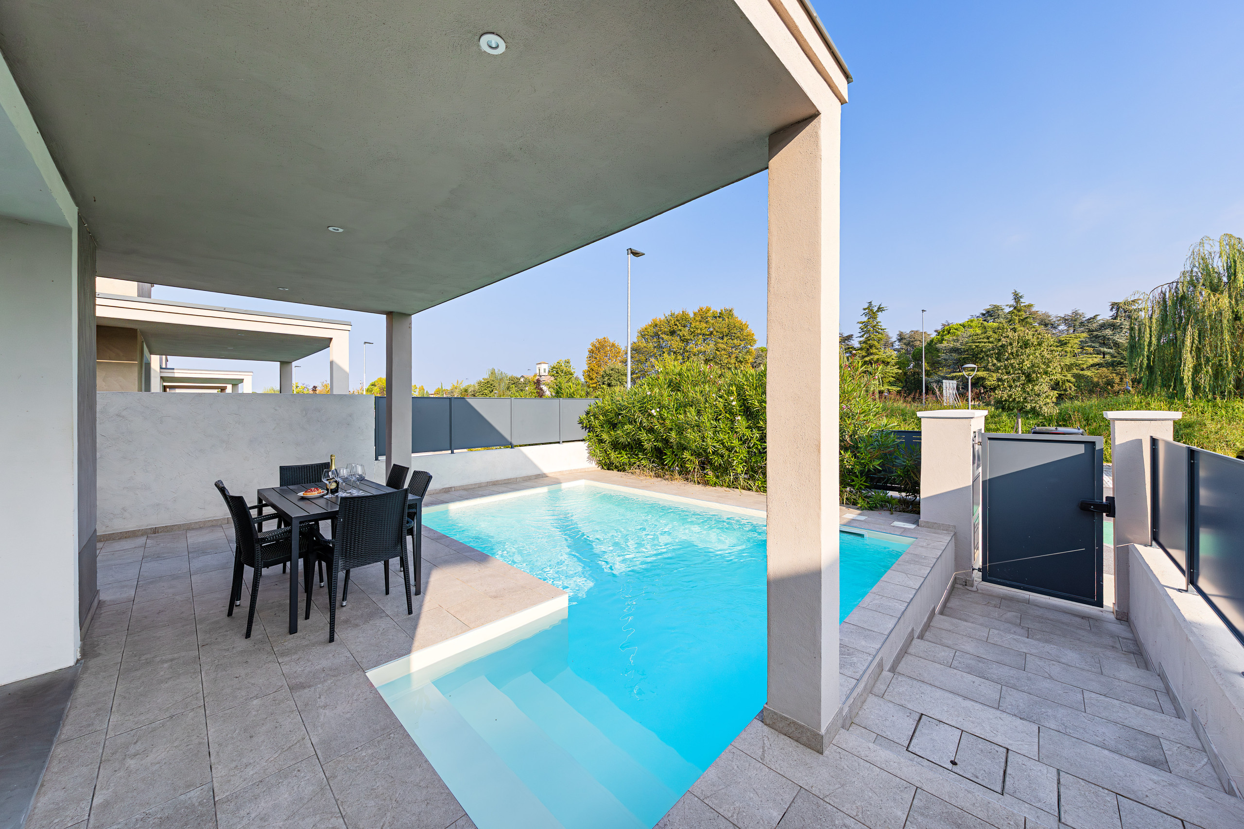 Elegant modern villa with private pool, garden and terrace, located in a quiet residential area just a few steps from the lake, in Sirmione.