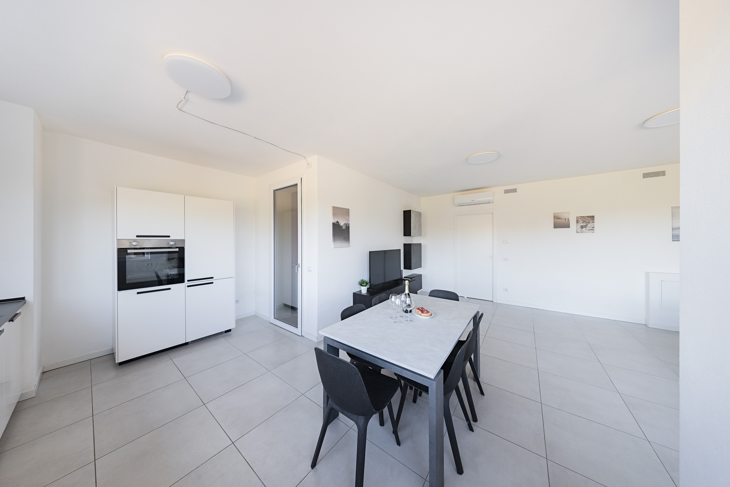 Amplio y moderno apartamento de nueva construcción con terraza, situado dentro del Katya Resort con piscina, perfecto para unas vacaciones en familia o en grupo de hasta 6 personas en Desenzano del Garda.
