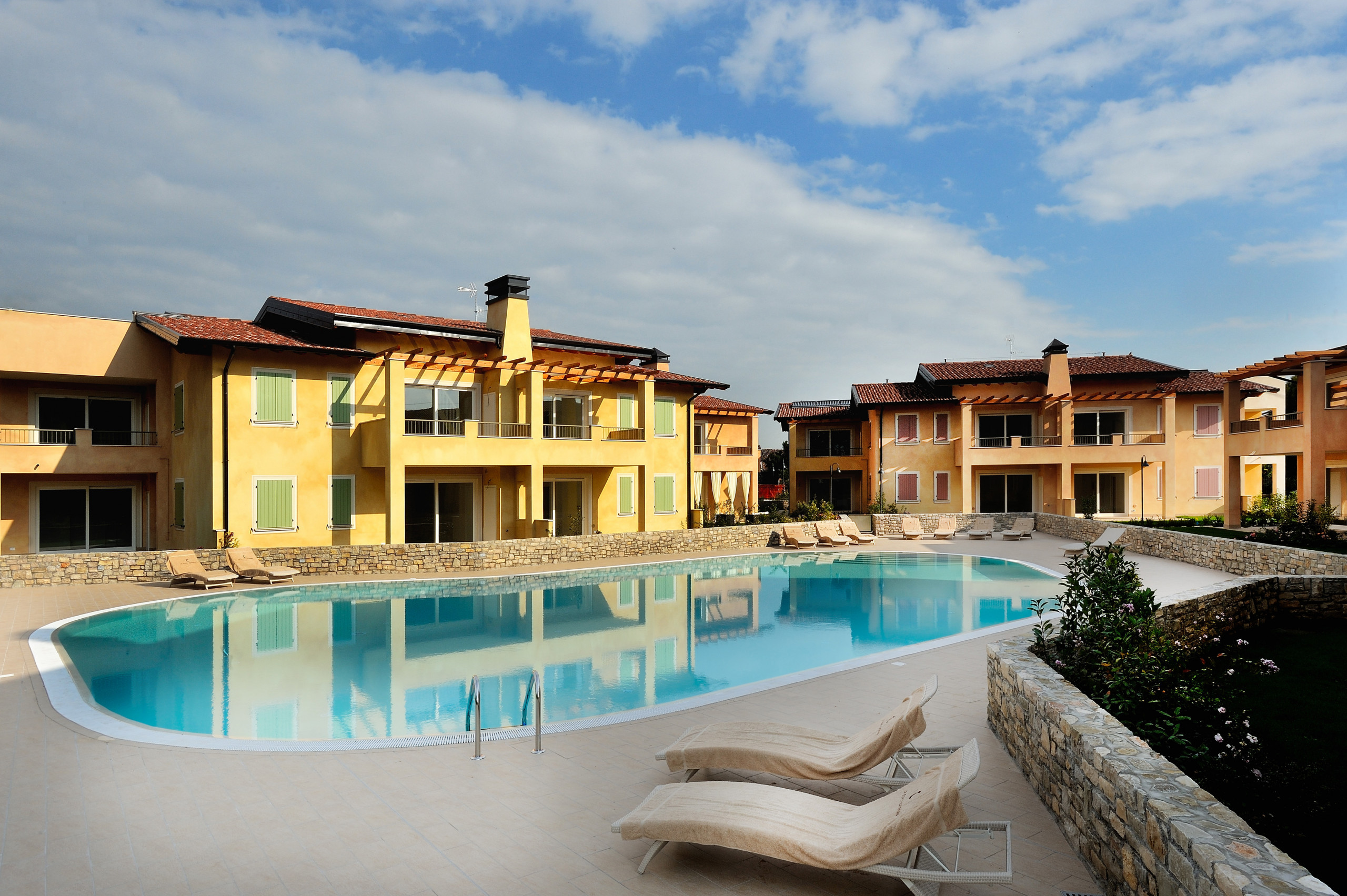 Moderno apartamento de dos dormitorios en planta baja, con jardín doble (frontal y trasero), situado dentro de un nuevo complejo residencial en Lonato del Garda con una gran piscina.