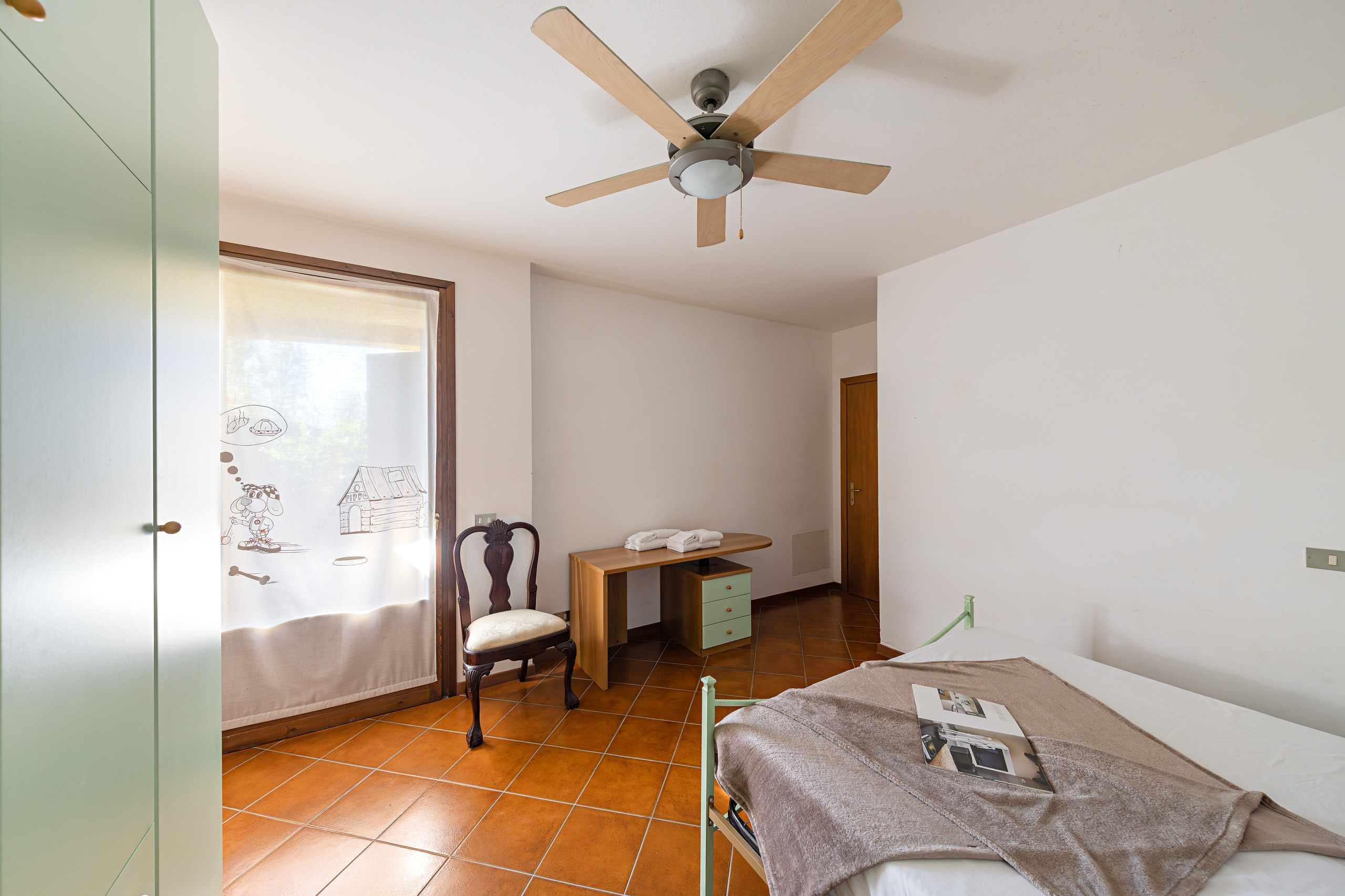 El dormitorio principal cuenta con cama doble, gran armario y baño en suite con ducha, lavabo, WC y bidé. El segundo baño dispone de bañera, lavabo, WC y bidé. El segundo dormitorio tiene dos camas individuales (80x180 cm) que pueden unirse en una cama doble, además de armarios. El tercer dormitorio incluye cama doble, amplios armarios, un práctico escritorio y vistas al jardín privado.