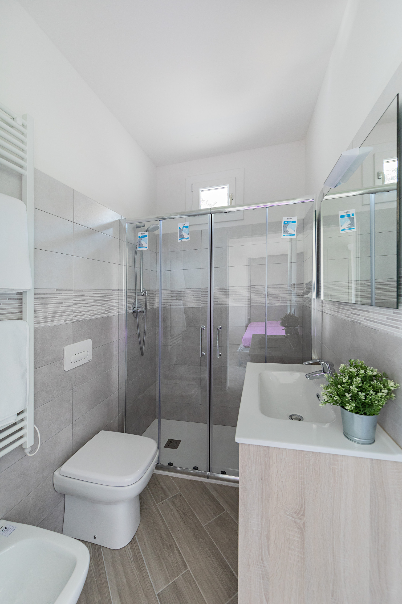 El apartamento también dispone de un baño completo con ducha, lavabo, bidé y WC.