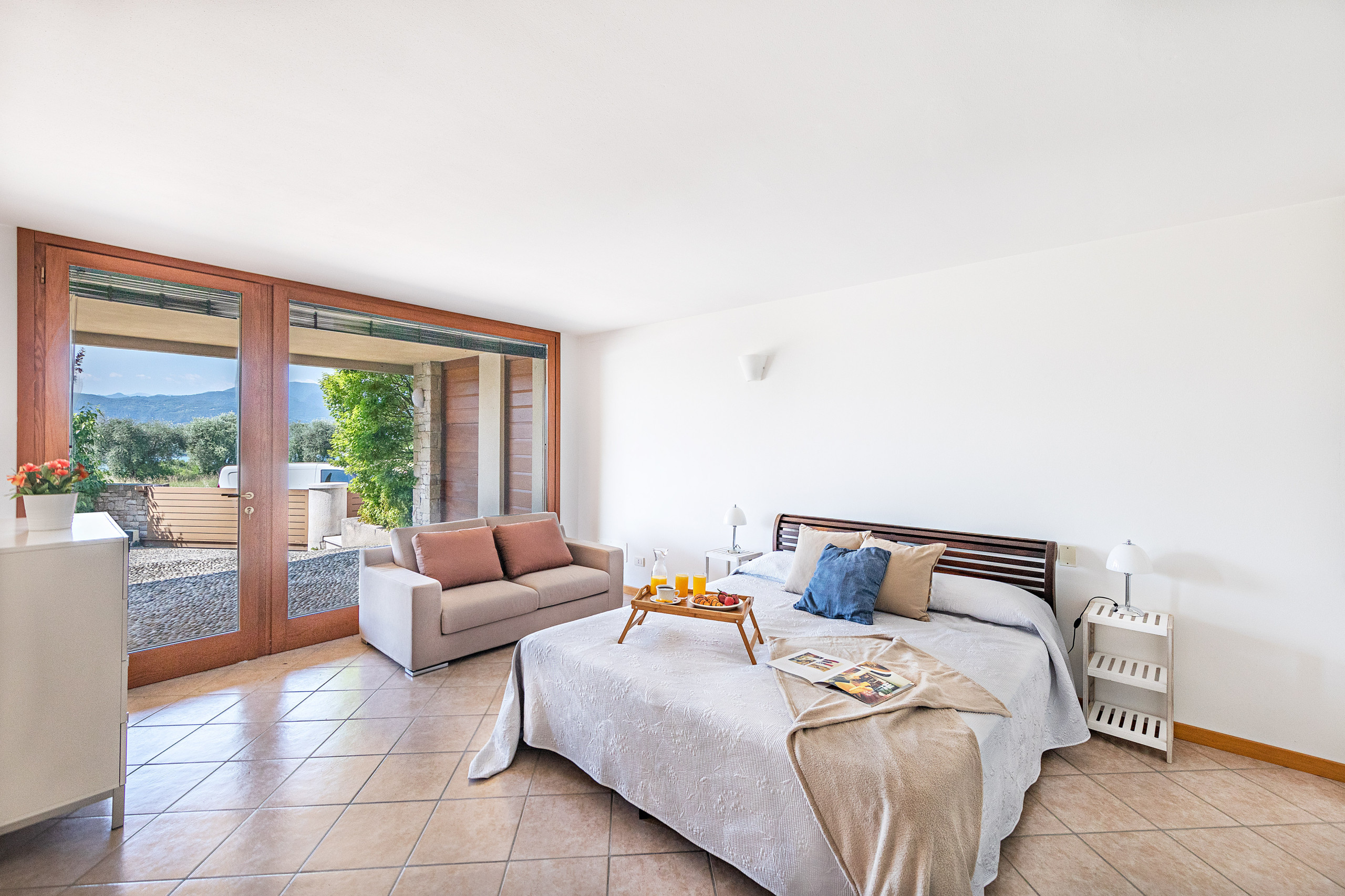En la planta baja de la villa hay espacios adicionales que aportan amplitud e importancia a Villa Vittoria. De hecho, se encuentran dos amplias suites con cama doble, sofá, sillón y armarios; cada una dispone de baño privado en suite con ducha, lavabo, bidé y WC. Las habitaciones de la planta baja cuentan con puerta acristalada con vista interna.